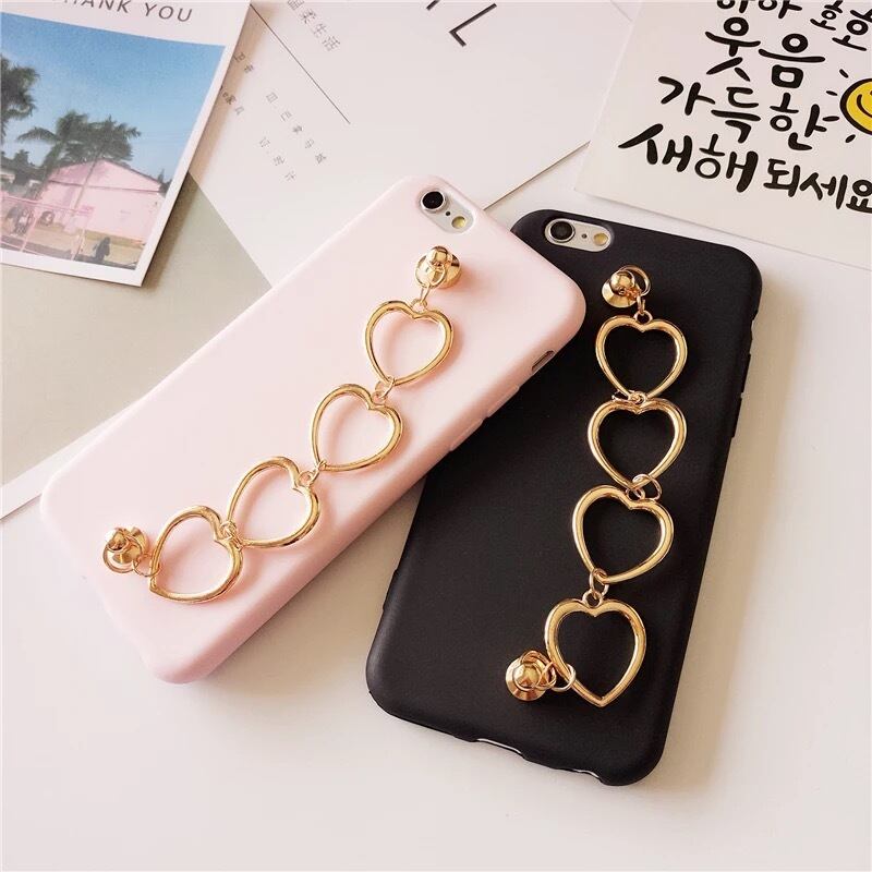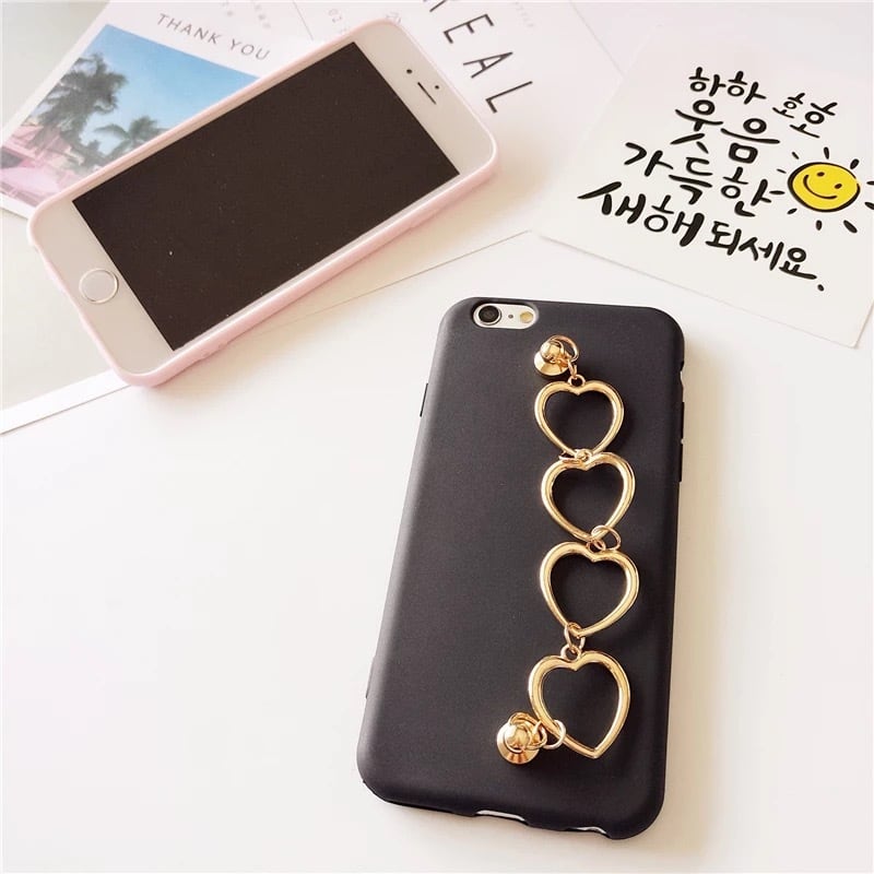 かわいいハート チェーン付き iPhone ケース